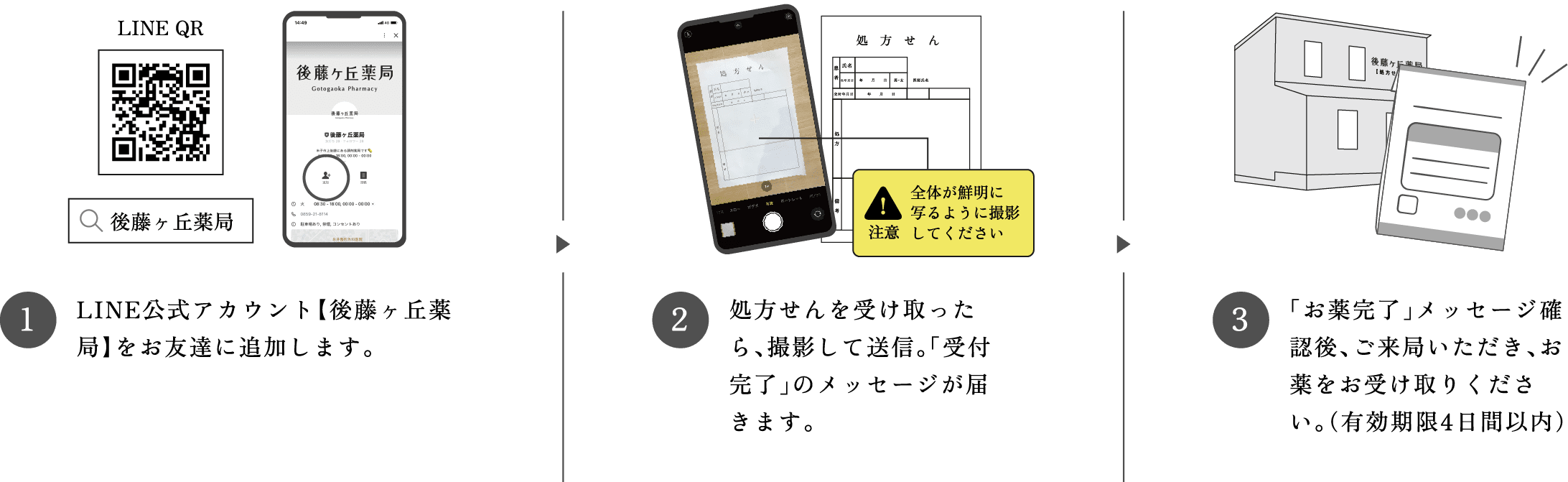有効期限は発行日を含めて4日間です。4日以内に必ず処方せんの原本をもってお薬をお受け取りください。お持ちいただいた処方せんの有効期限が切れていた場合は恐れ入りますが無効となります。